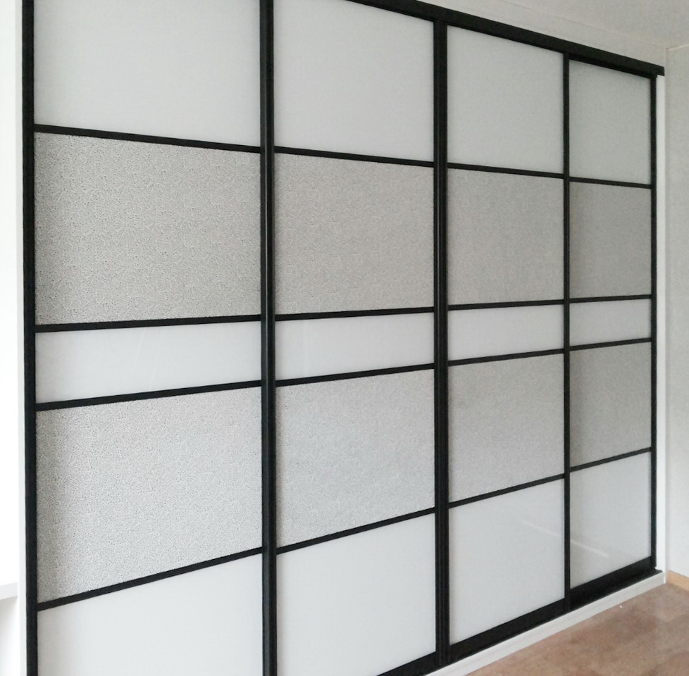 Шкаф-купе в цвете темного дерева. Глухие раздвижные створки на системе Сенатор.