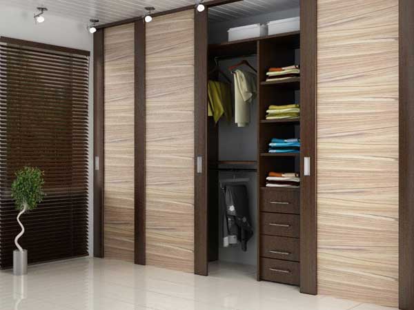 Раздвижные двери с удобными ручками. Ширина шкафа 152 см.