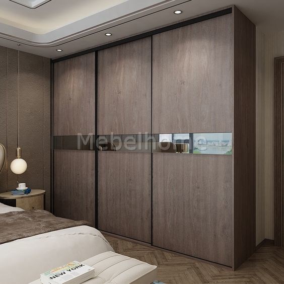 Горизонтальные вставки из темной экокожи, тонированное зеркало, удобная система хранения.