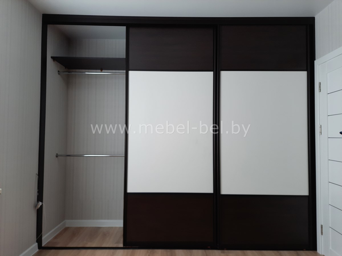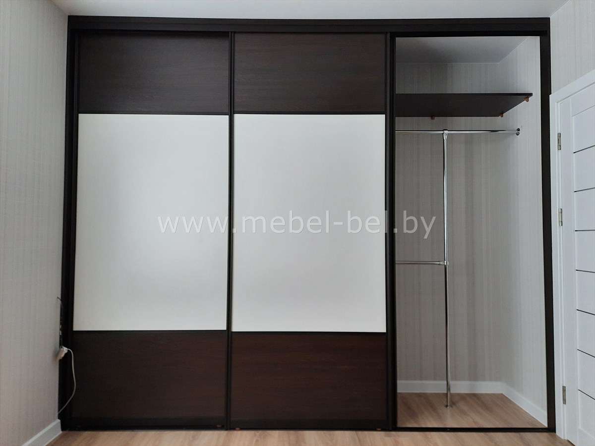 Недорогой шкаф-купе для светлого интерьера. Надежный алюминиевый профиль.