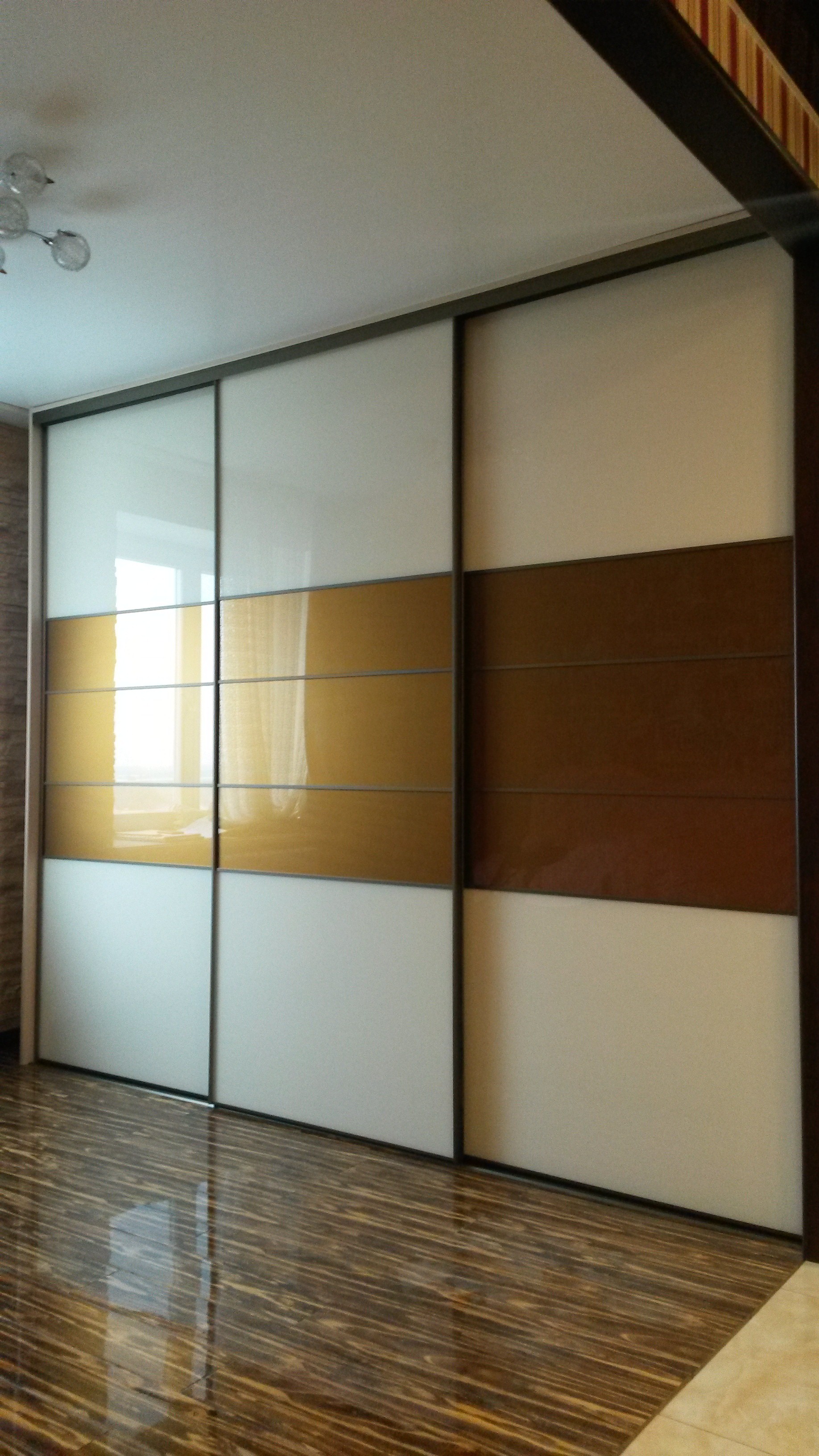 Декоративное стекло на створках. Подсветка верхнего карниза.