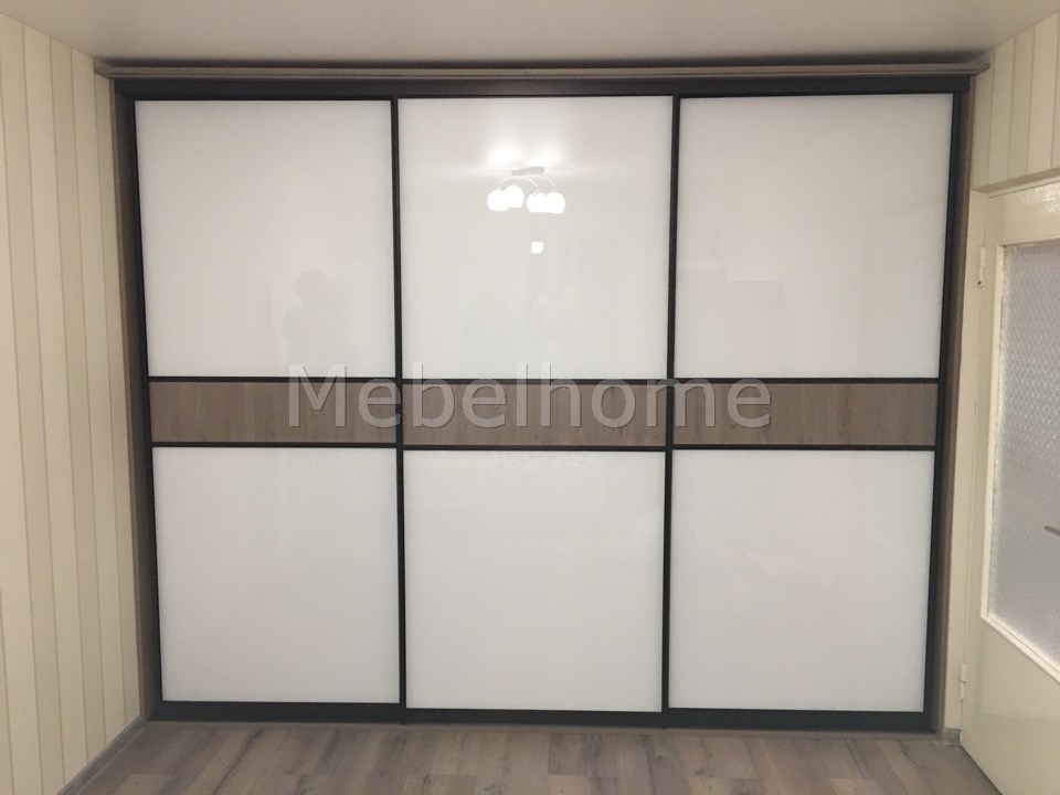 код 112837Вместительный шкаф с фасадами лакобель. Черный профиль, горизонтальная вставка.