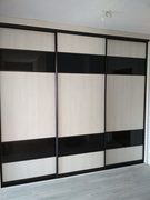 Встроенный трехдверный шкаф-купе со стеклом лакобель