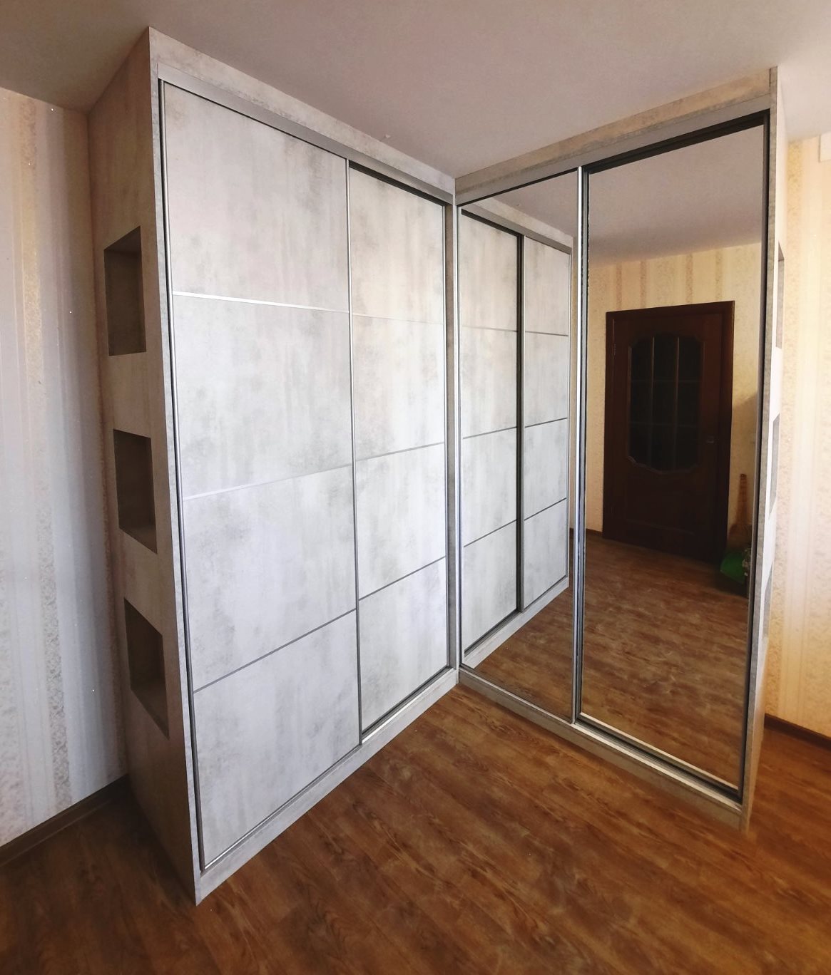 Шкаф-купе с зеркалом и стеллажом слева. Ширина 185 см.