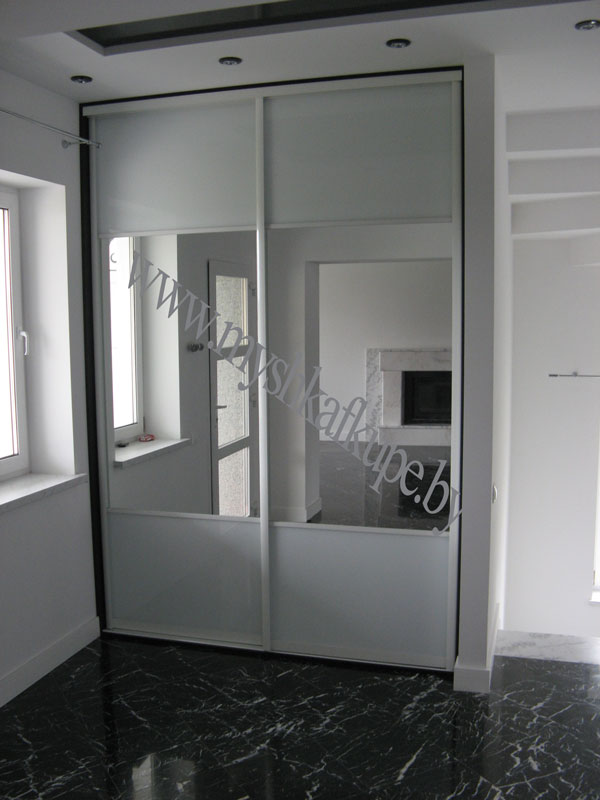 Встроенный в нишу шкаф-купе Белый глянец - Зеркало