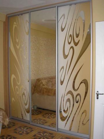 Зеркальный шкаф-купе с рисунком пескоструйным нанесением