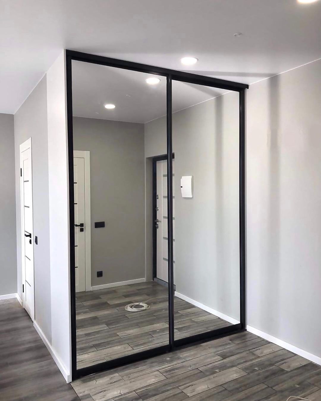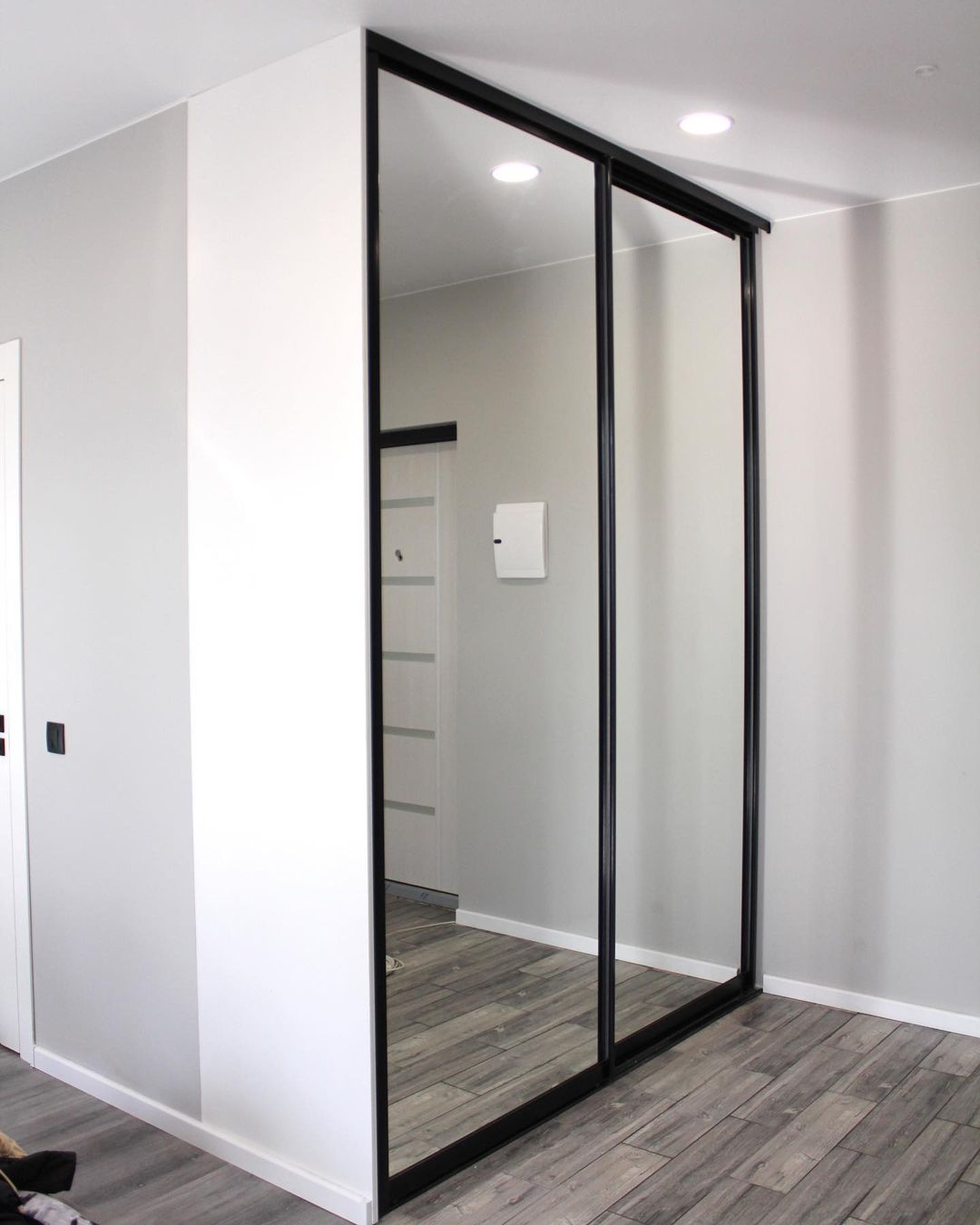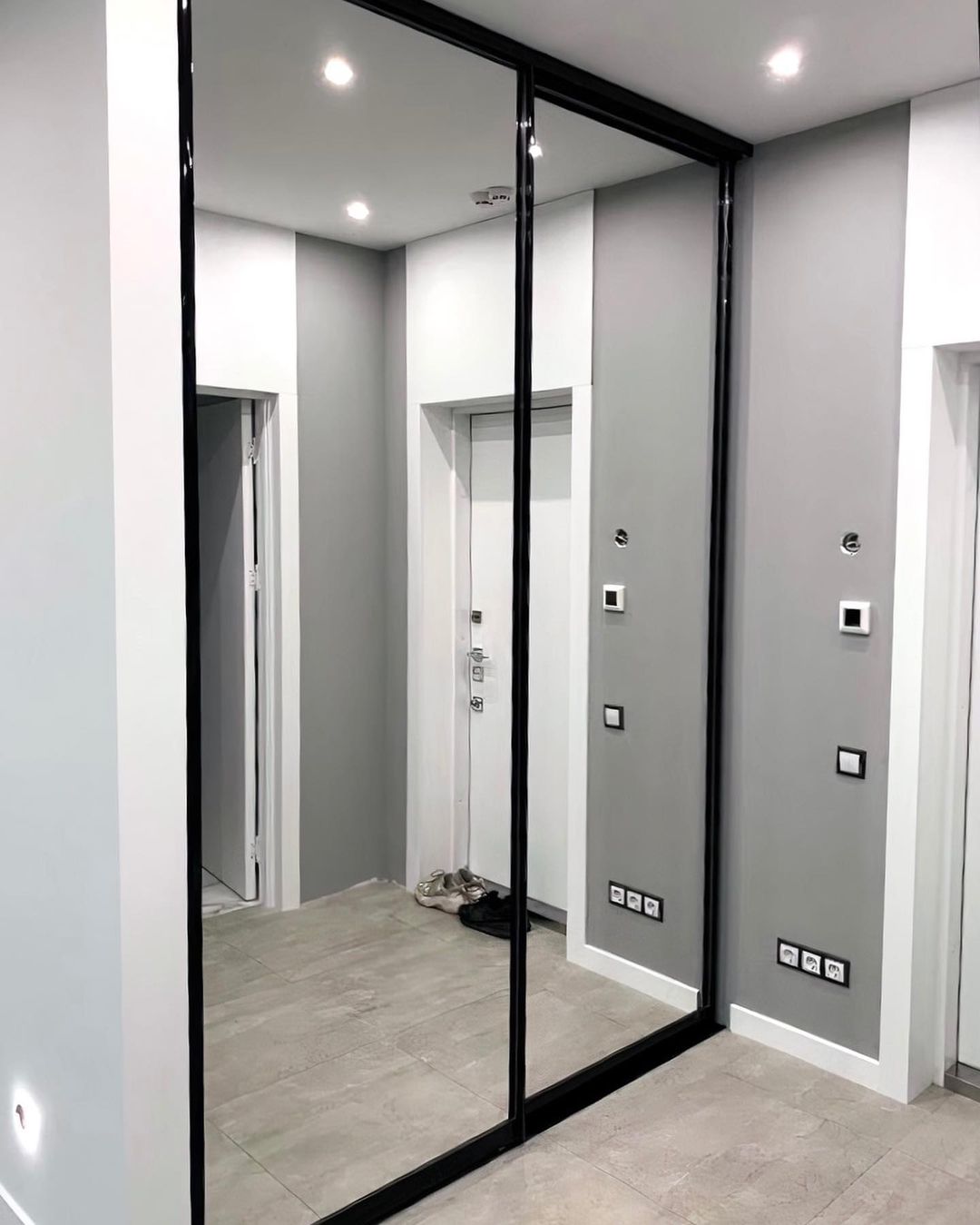 Черный профиль, зеркальные фасады. Встраиваемая модель.
