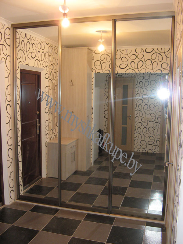 код 89013Система раздвижения: Сенатор. Профиль: шампань. Фасад: зеркало серебро.