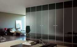 Трехдверный шкаф-купе из черного стекла