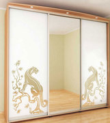 Трехстворчатый шкаф-купе. На зеркальном фасаде рисунок в стиле китайской живописи.