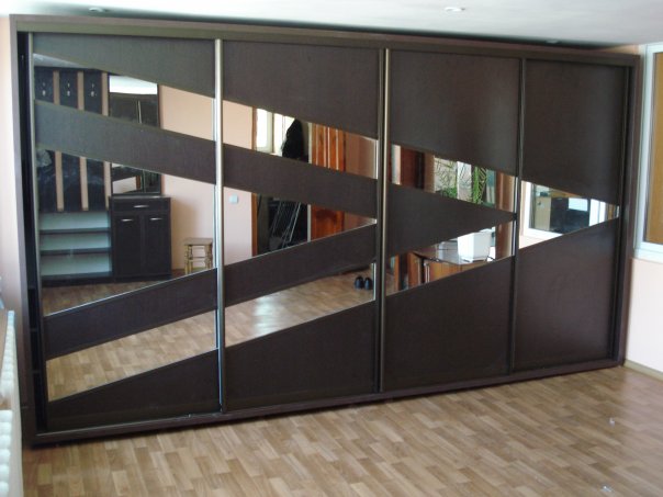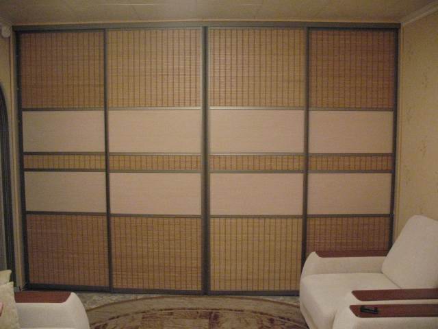 Шкаф-купе с использованием бамбука и зеркала бронза