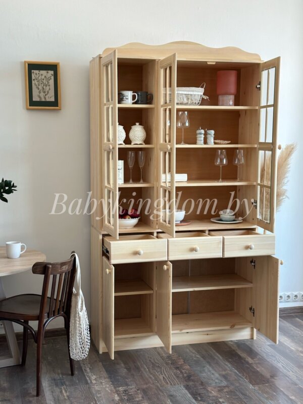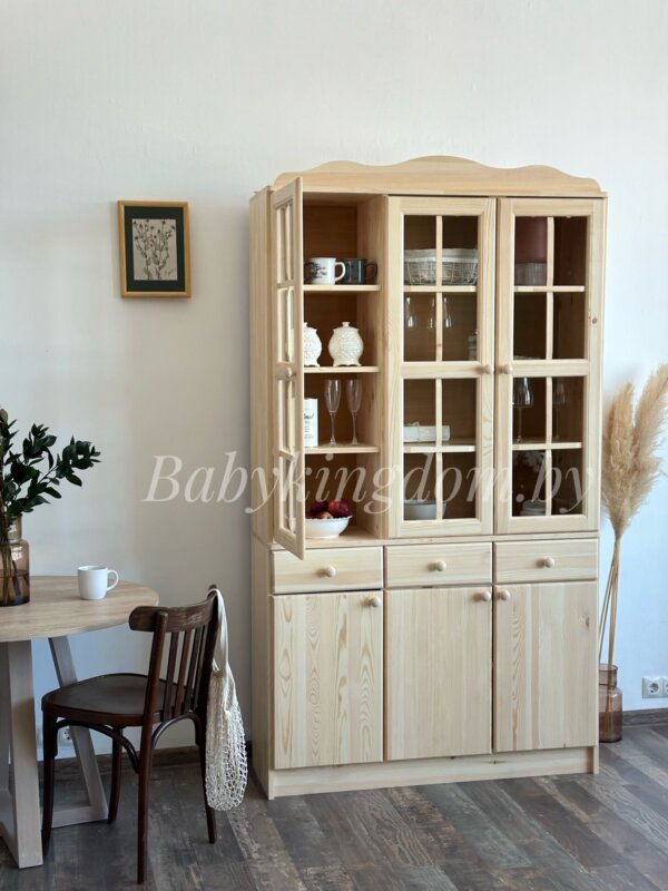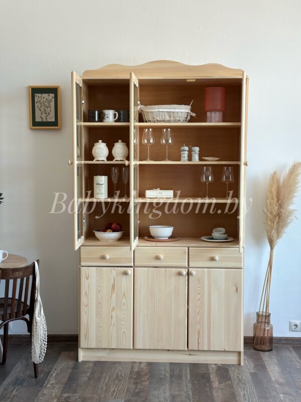 Шкаф для посуды «221» Антарес массив сосны (графит/бейц масло)