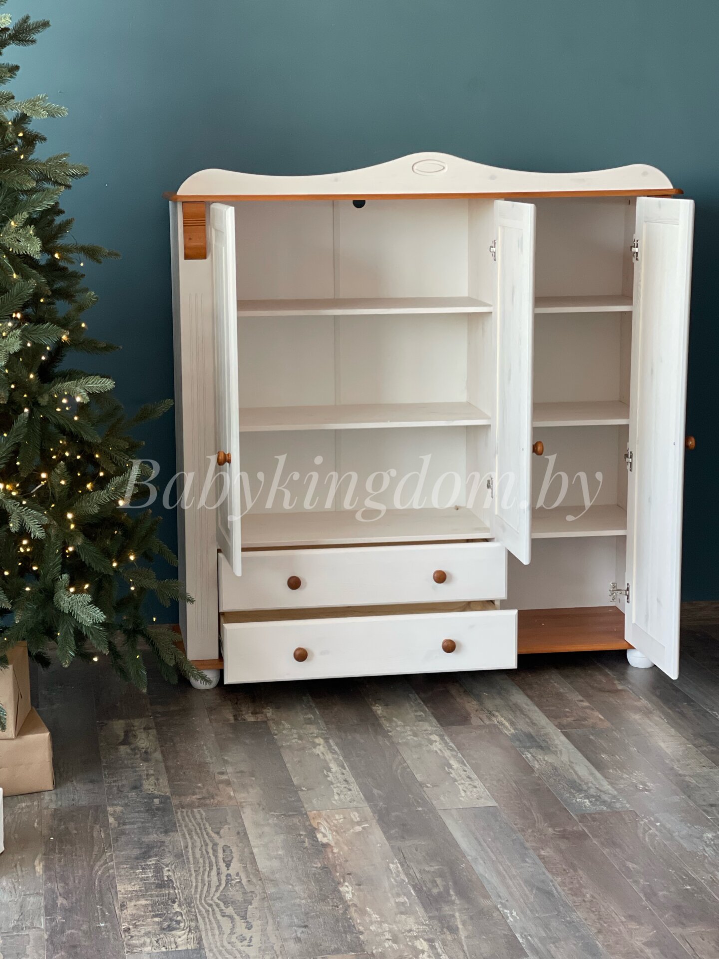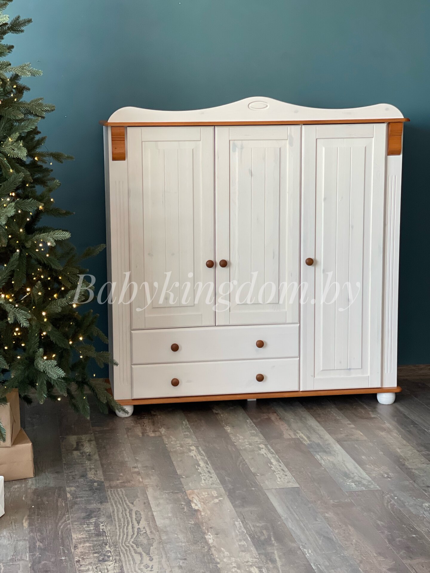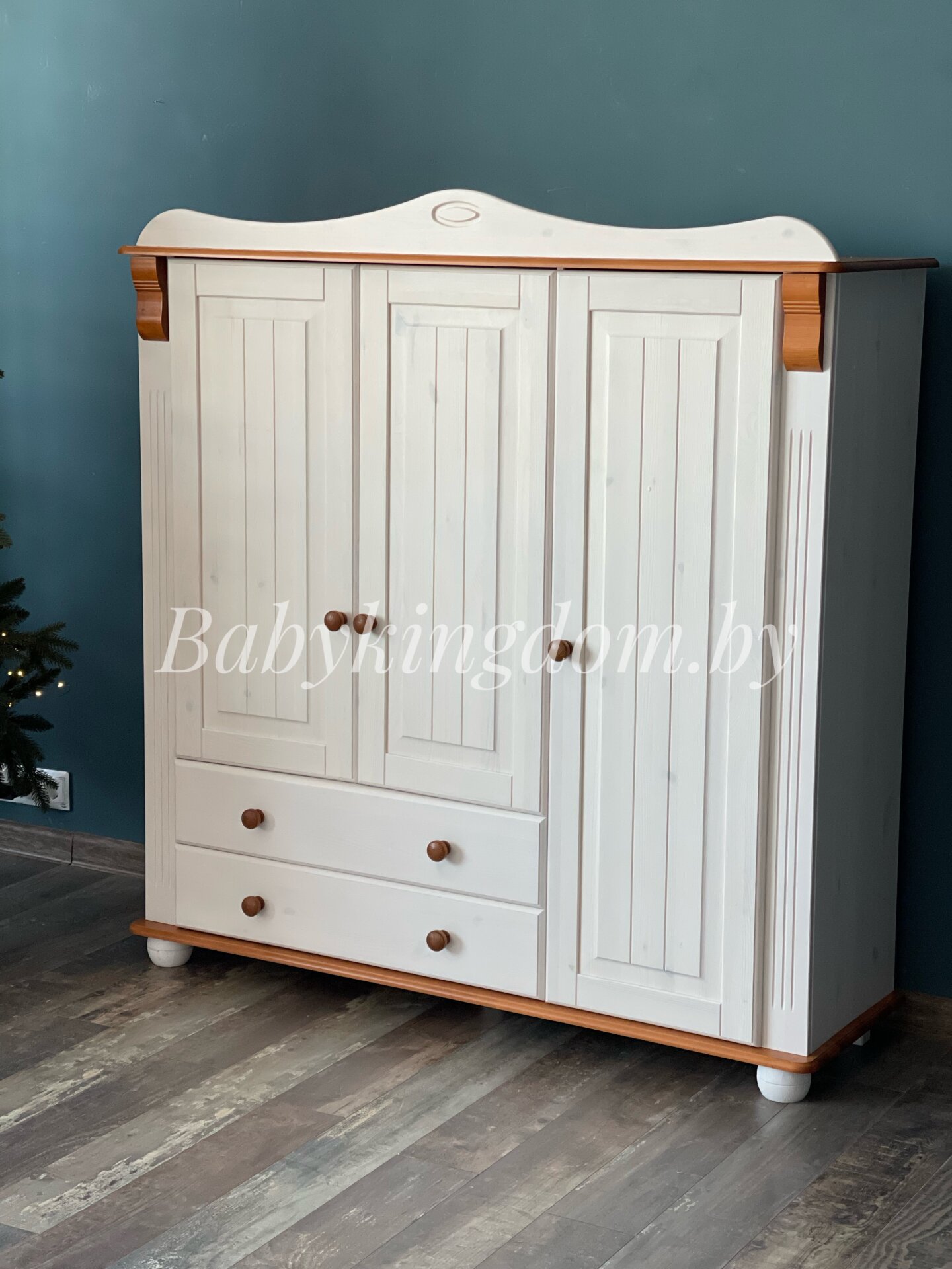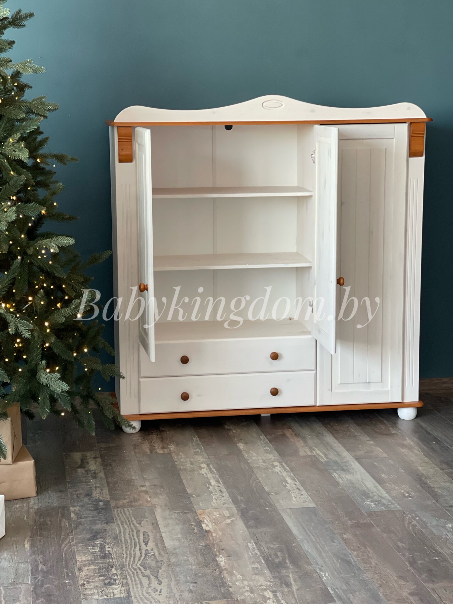 Шкаф из массива сосны «Хельсинки 2GT» (Белый воск/антик)