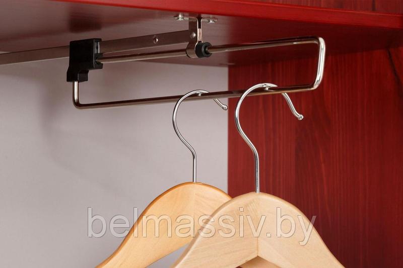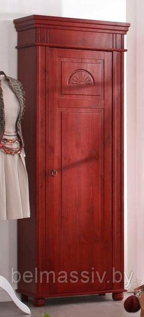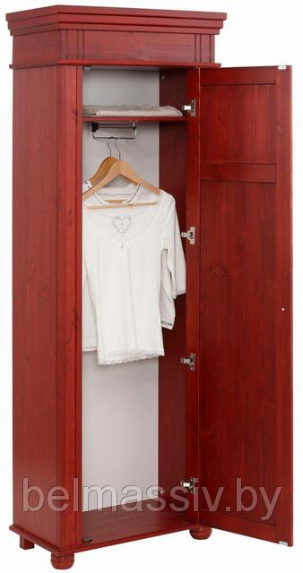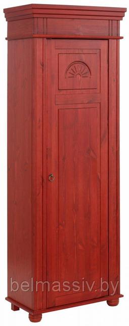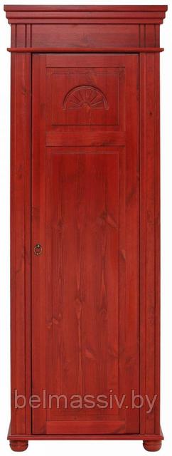 Шкаф для одежды «Мюнхен Д 7204-1» представлен в классическом дизайне с красным цветовым оформлением. Эффект патинирования, примененный для отделки шкафа, органично дополняет классический дизайн изделия. Наполнение шкафа представлено большим отделением с полкой и штангой для вешалок с одеждой.