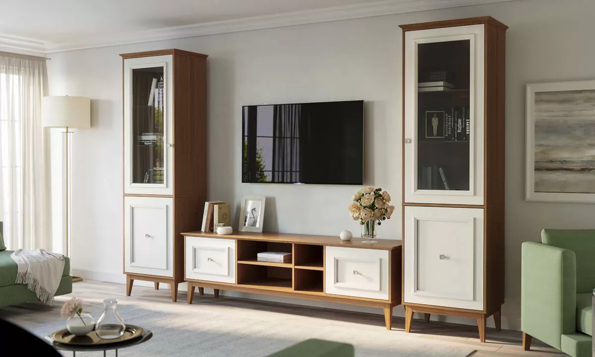 Фасад: МДФ, облицованный шпоном дуба, накладки из массива дуба, прозрачное стекло.