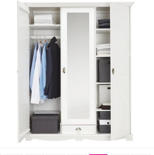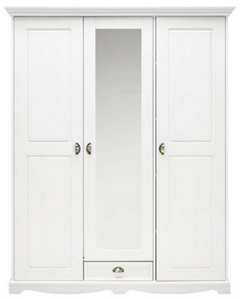Классический шкаф «Клаудиа Д 7112-04» для размещения в спальной комнате. Изысканный белый фасад способен добавить любому помещению света и зрительно расширить пространство. Функционал представлен обилием полочек и штангой для вешалок с одеждой. Центральная секция оснащена большой зеркальной створкой,с небольшим ящичком снизу.