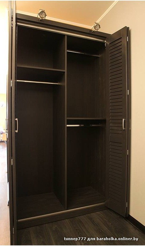 код 86204Шкаф цвета венге со складными дверцами-жалюзи. Удобное наполнение с планками.
