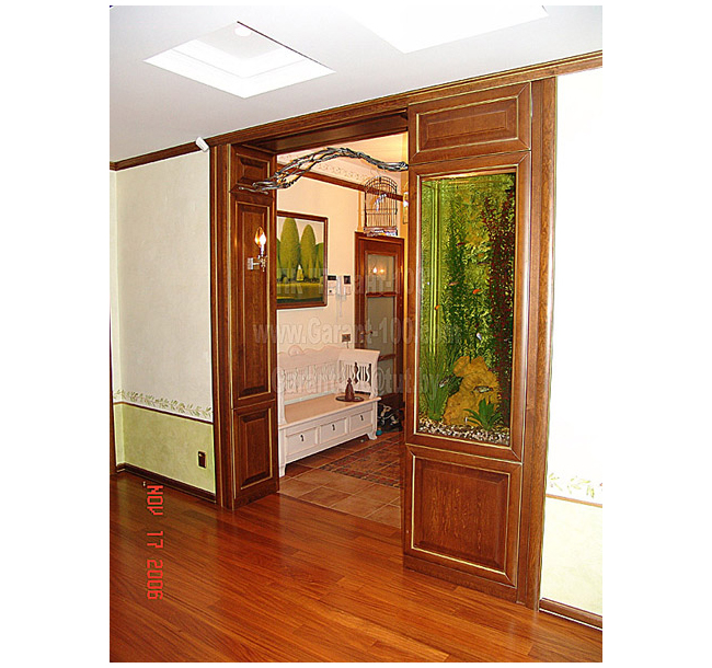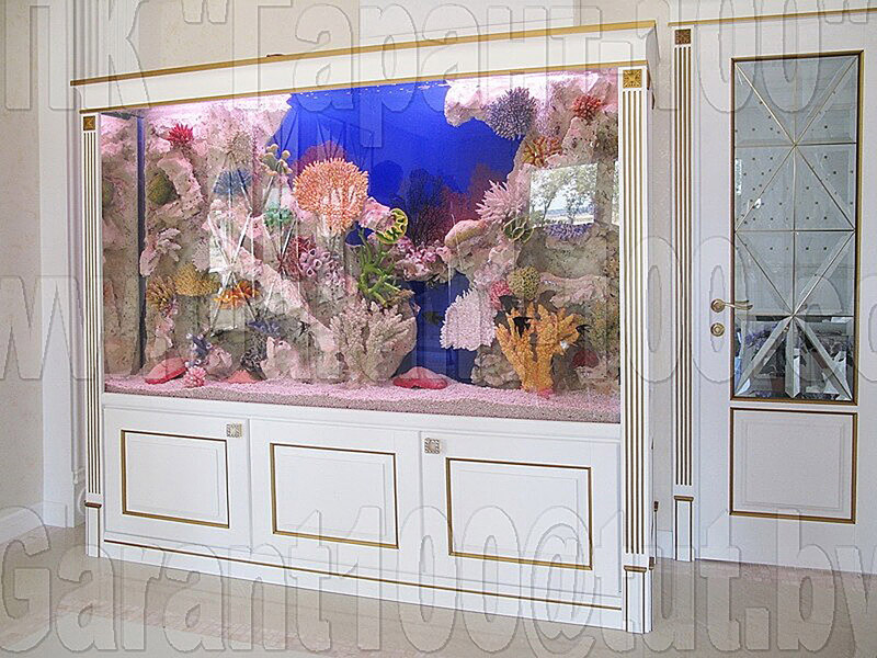 Изящная витрина, выполненная в классическом стиле, станет центральным элементом любого интерьера. Главной особенностью данной модели является наличие встроенного аквариума, который придает конструкции исключительную уникальность. Изделие выполнено из качественных материалов, и отличается высокими показателями прочности и долговечности. Фасад декорирован филенчатыми вставками.