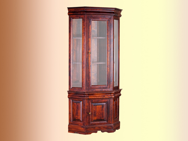Высокий шкаф из массива с открытыми полками и шуфлядками.