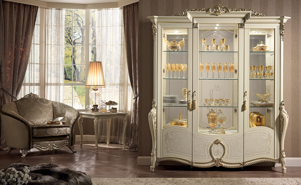 Витрина трехдверная распашная «Тициано» для посуды в гостиную премиум-класса от итальянского производителя.