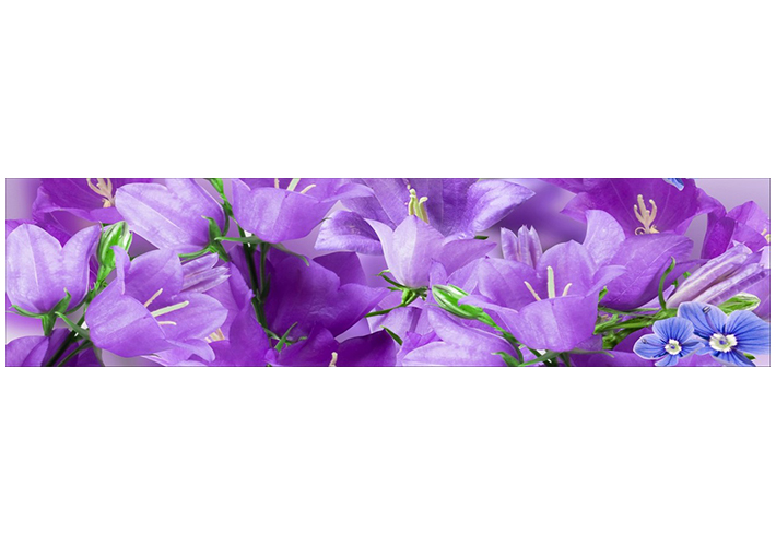 В оформлении панно преобладает фиолетовый цвет. Яркая летняя картинка с изображением нежных цветов — прекрасное дополнение любого интерьера.