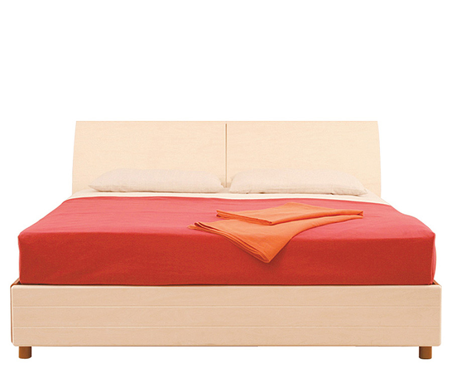 Двуспальная кровать с прямоугольным высоким изголовьем в элегантной стяжке.