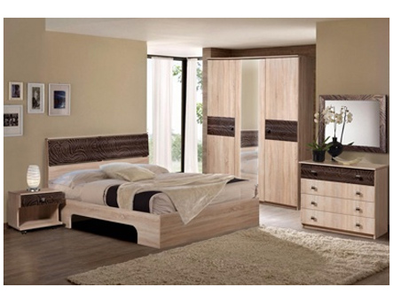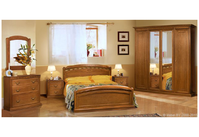 Комплект: шкаф для одежды, зеркало, тумба прикроватная, комод.