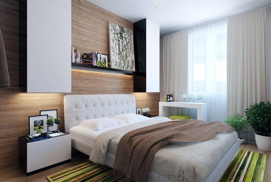 Темный и светлый оттенки в отделке. Кровать со спальным местом 200х160 см.