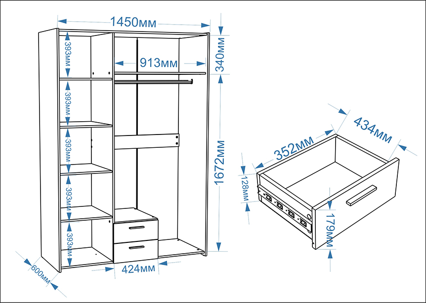 Материал фасада: ЛДСП 16мм., зеркало с фацетом