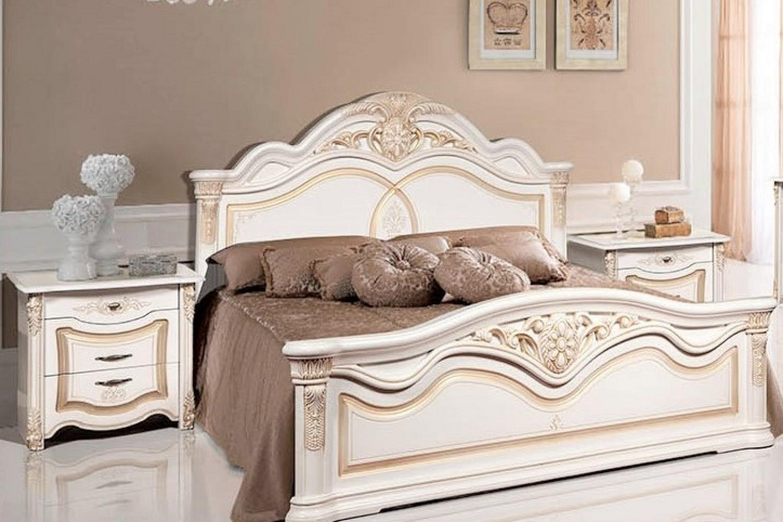 Гарнитур для спальни «Джулия-4С со столиком» белый с золотой патиной