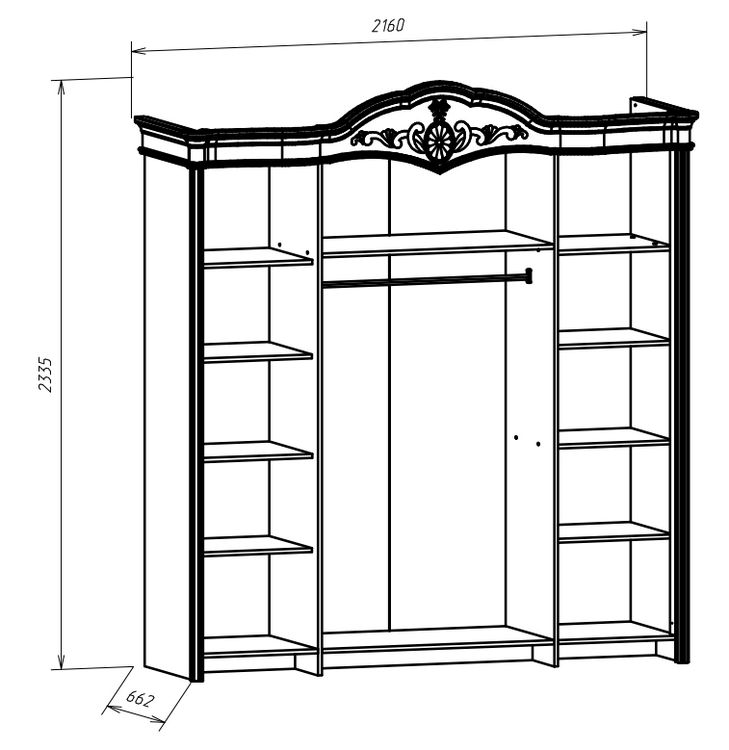 1) Шкаф для одежды 4-х створчатый - 1 шт. (ШхВхГ): 2171x2336x659 мм.