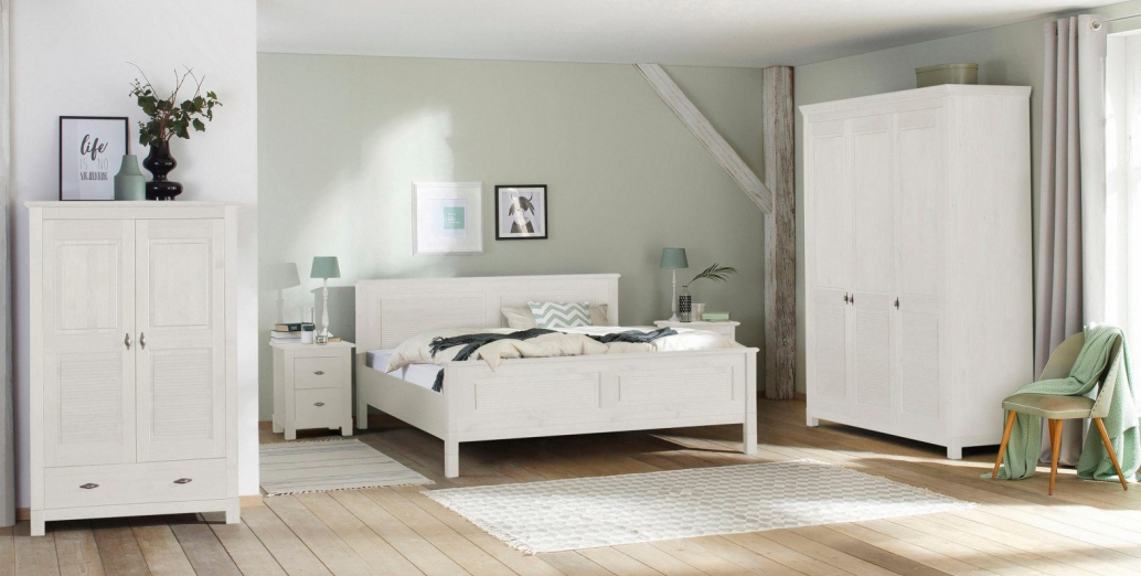 Коллекция «Рауна» — это изысканная мебель для спальни, выполненная из массива сосны. Нежный оттенок «белый воск» придаёт мебели утончённый и свежий вид, который гармонично впишется в интерьер вашей спальни.