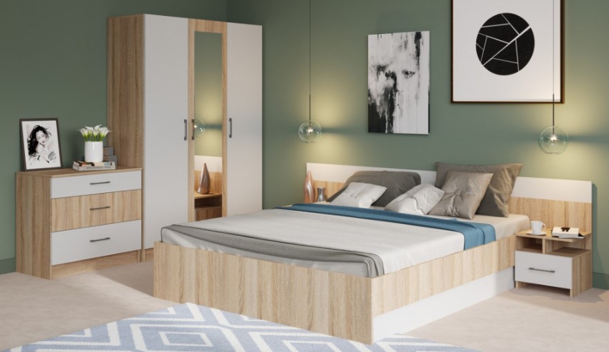 Спальня «Сканди» комплект 2, белый/дуб вотан (Мебель-Неман)