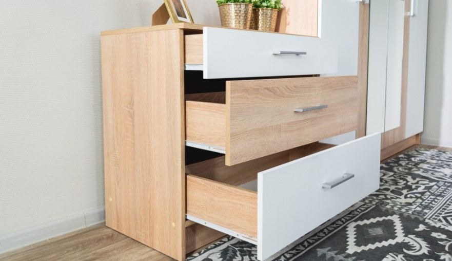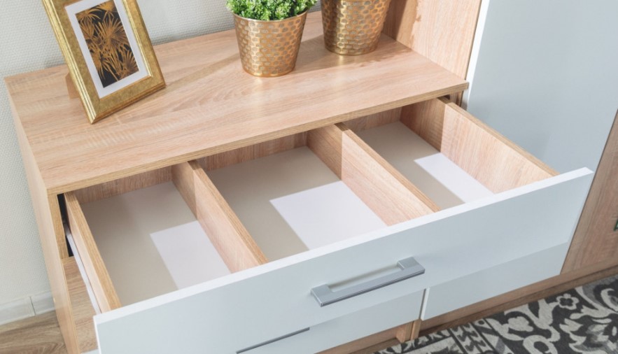 - Верхний ящик комода разделен на три отдела для оптимальной организации хранения мелких предметов.