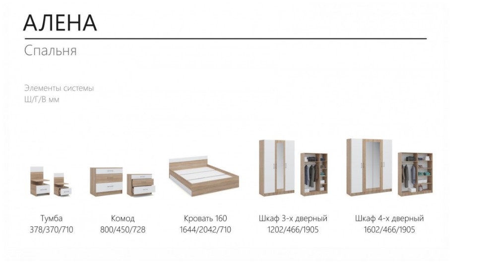 Комплект «Алена» Дуб сонома/белый с 3-х дв. шкафом