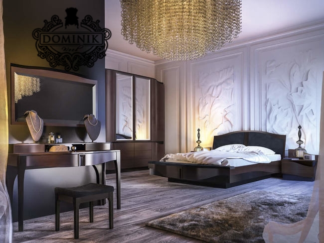 Классическая коллекция мебели для обустройства спальной комнаты. Материал: МДФ покрытый плёнкой, ЛДСП.