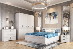 Полный комплект: кровать, прикроватные тумбы, шкаф, комод.