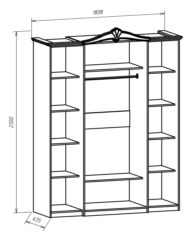 Шкаф для одежды: 2325х1804х624 мм.