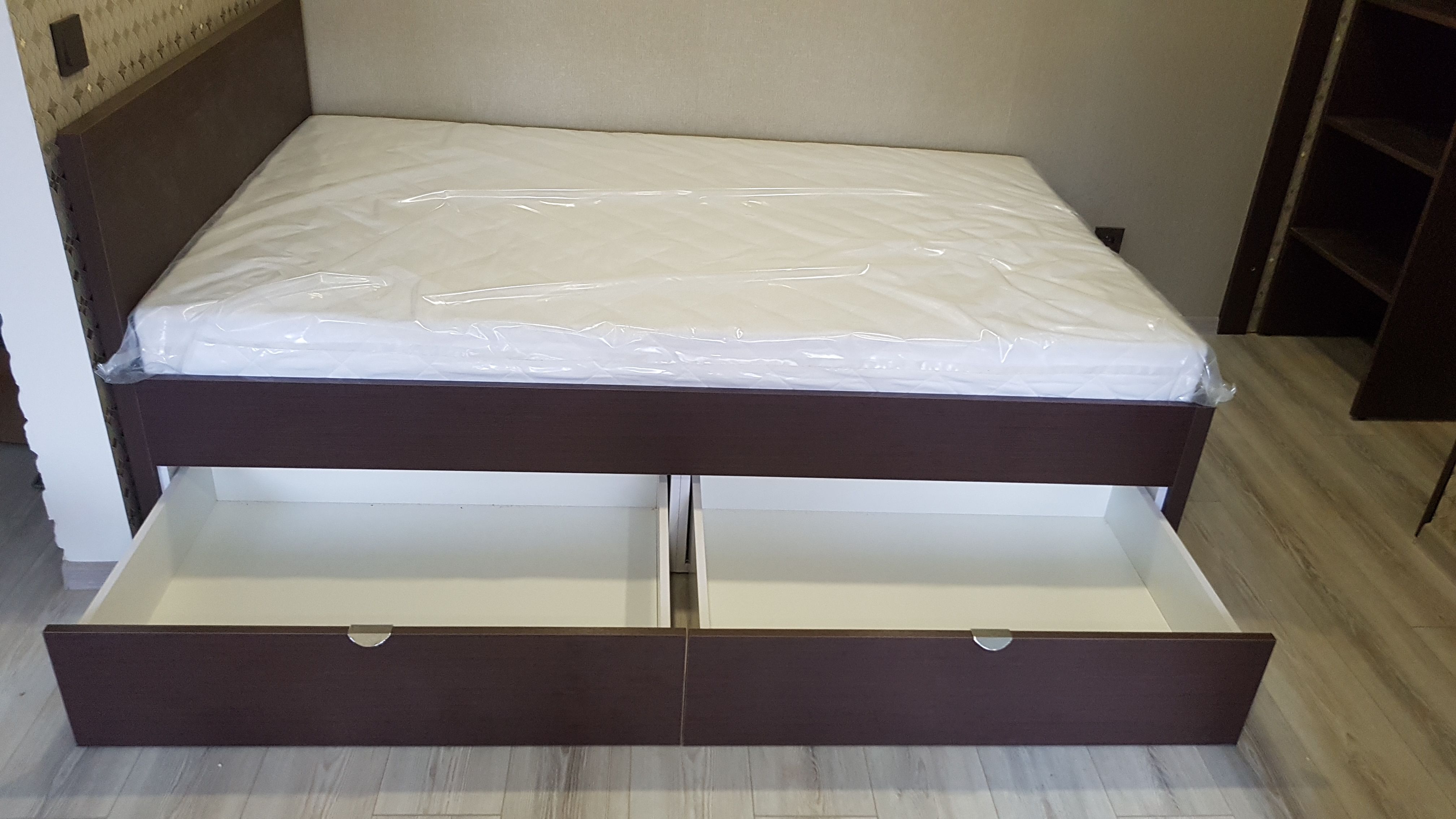 Темный и светлый оттенки в отделке. Кровать со спальным местом 200х160 см.