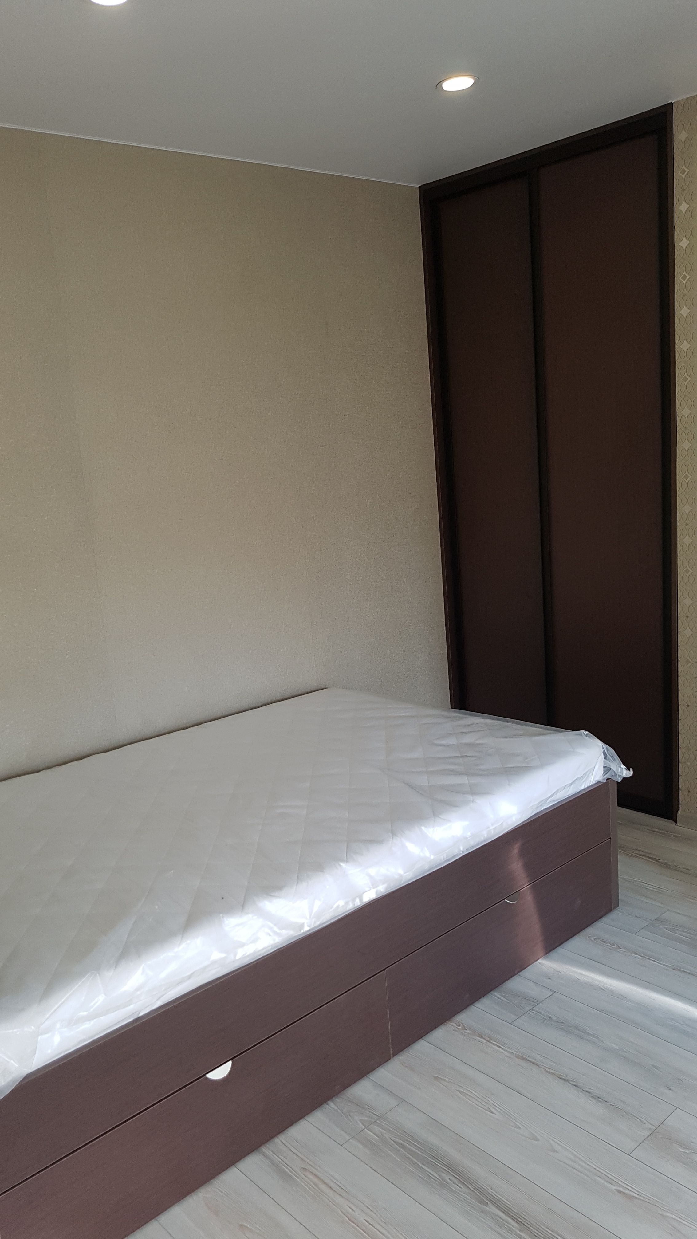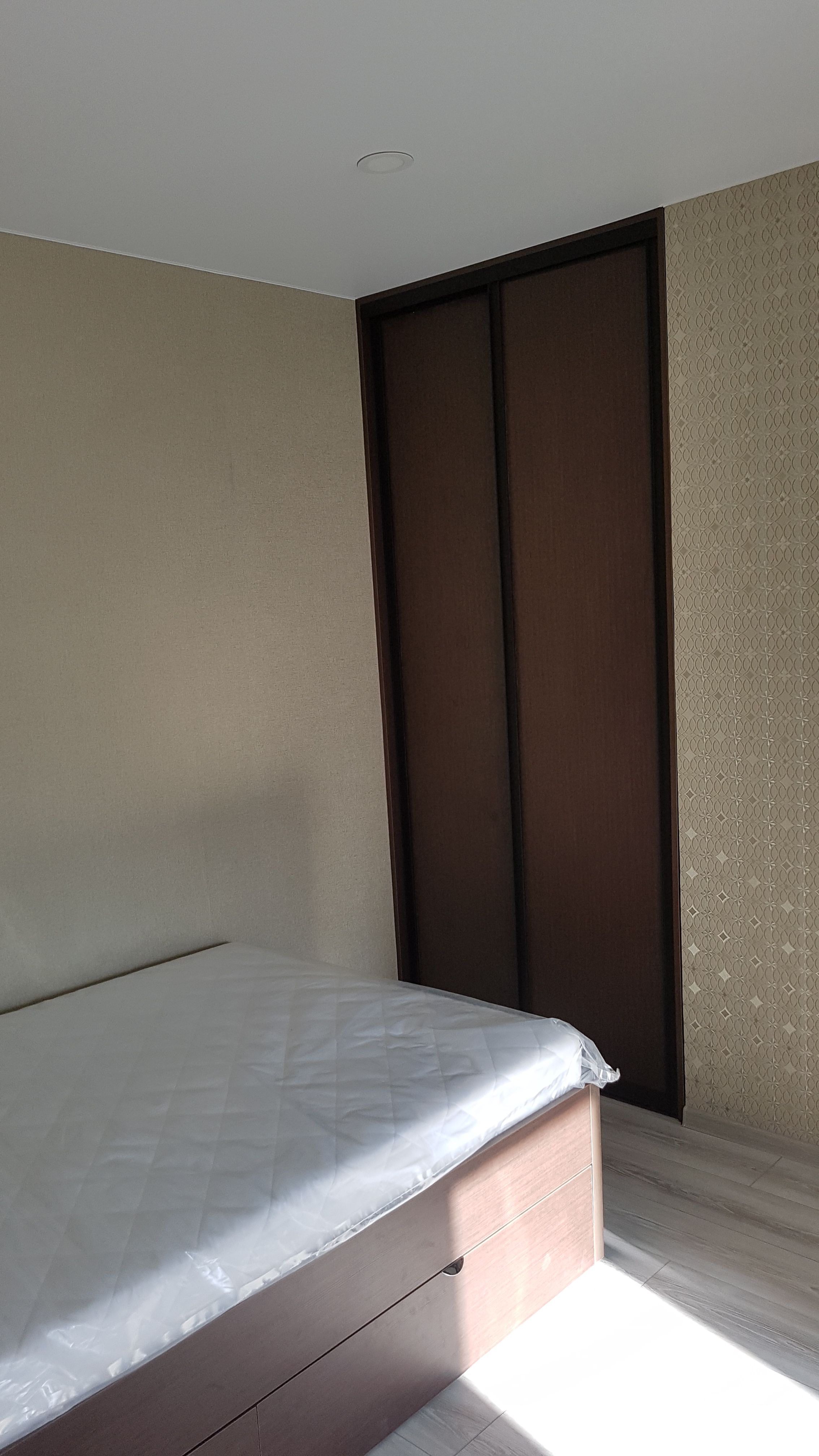 Вместительный шкаф-купе. Удобное спальное место кровати.