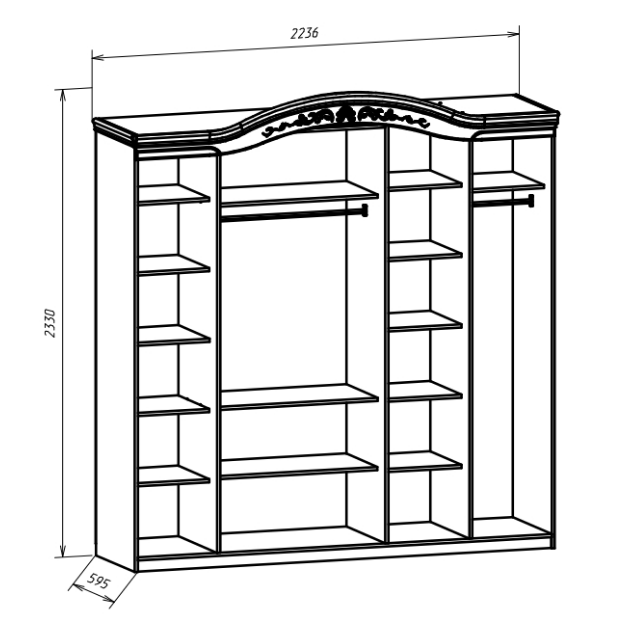 Шкаф для одежды 5-ти створчатый: H2330 х B2235 х T595 мм.
