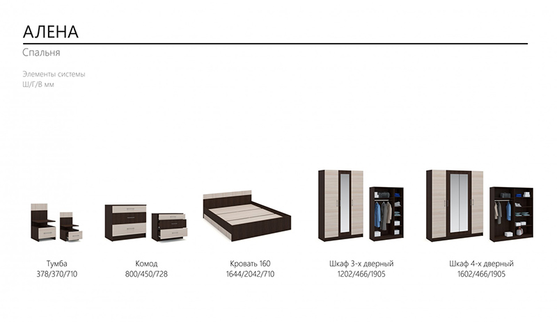 Модульная спальня «Алена» венге-дуб молочный, вариант 1