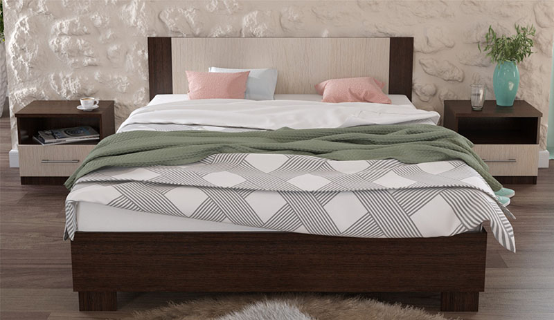 Состав комплекта: комод, шкаф, двуспальная кровать, тумба (2 шт).