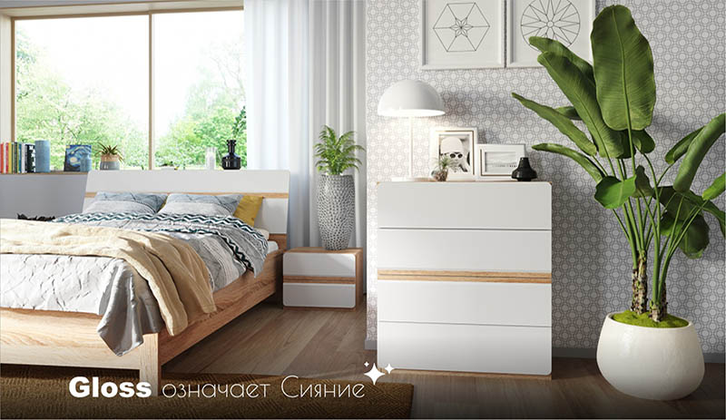 Спальня «Белладжио» Комплект 1 - Белый глянец/Дуб сонома (BTS)