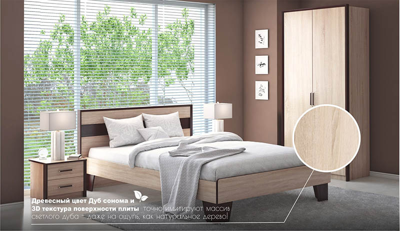 код 111744Спальня из ЛДСП в натуральных древесных оттенках.