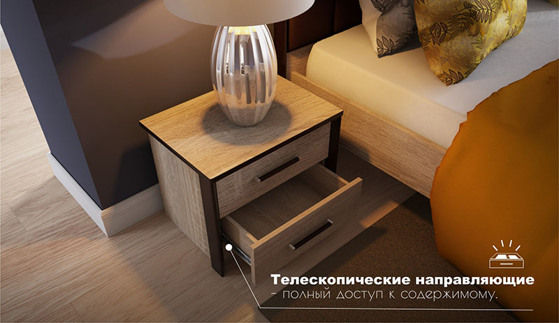 - Тумба прикроватная (2 шт.), ШхВхГ: 50х40х36,4 см, вес: 12 кг.
