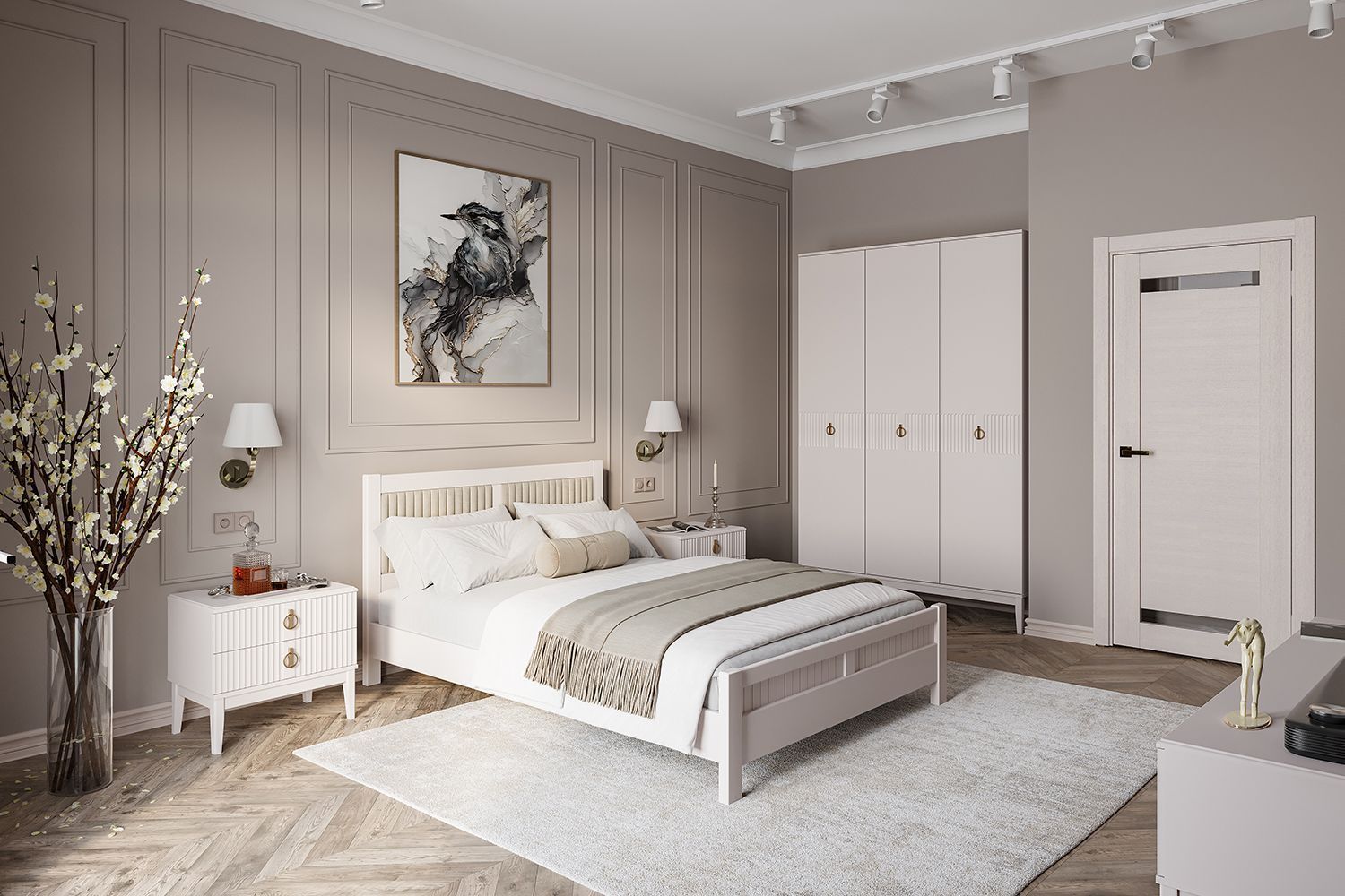 Модульная спальня «Аврора» белый-ателье светлый, вариант 1