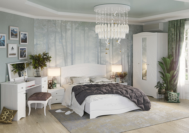 Комплектация: кровать двуспальная, комод. Материал: ЛДСП, МДФ.
