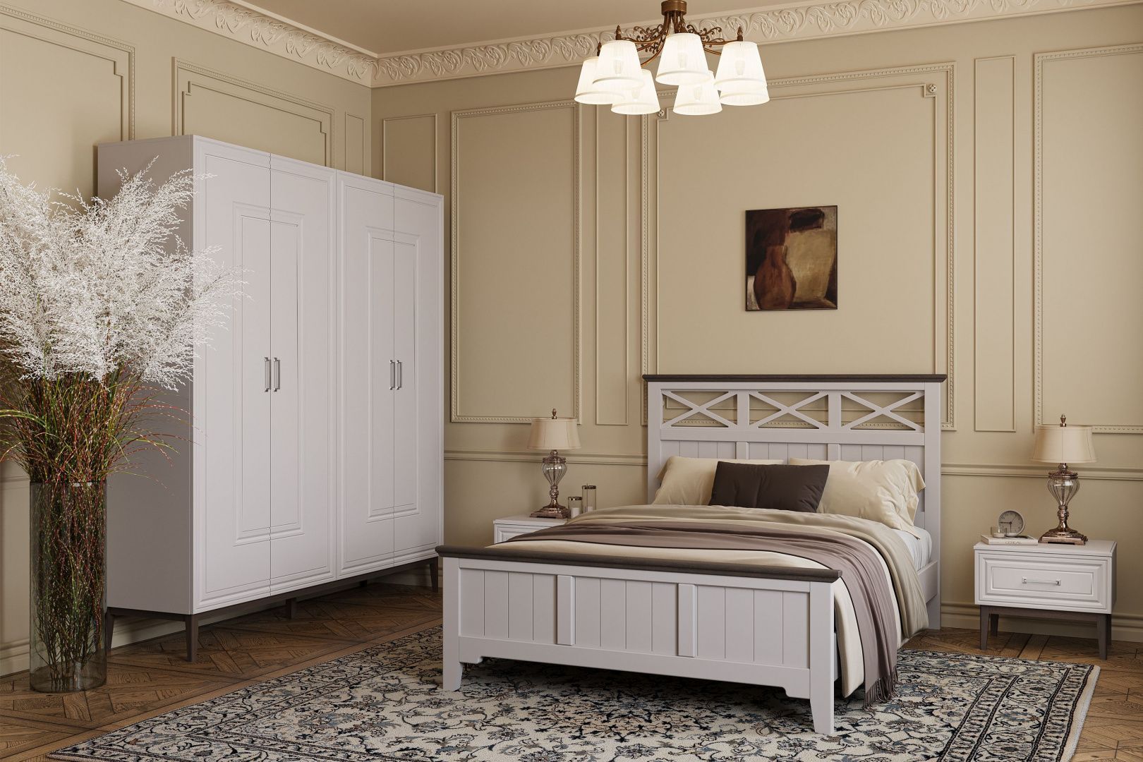 Модульная коллекция мебели в белом для спальной комнаты. Материал: МДФ, ЛДСП, массив.