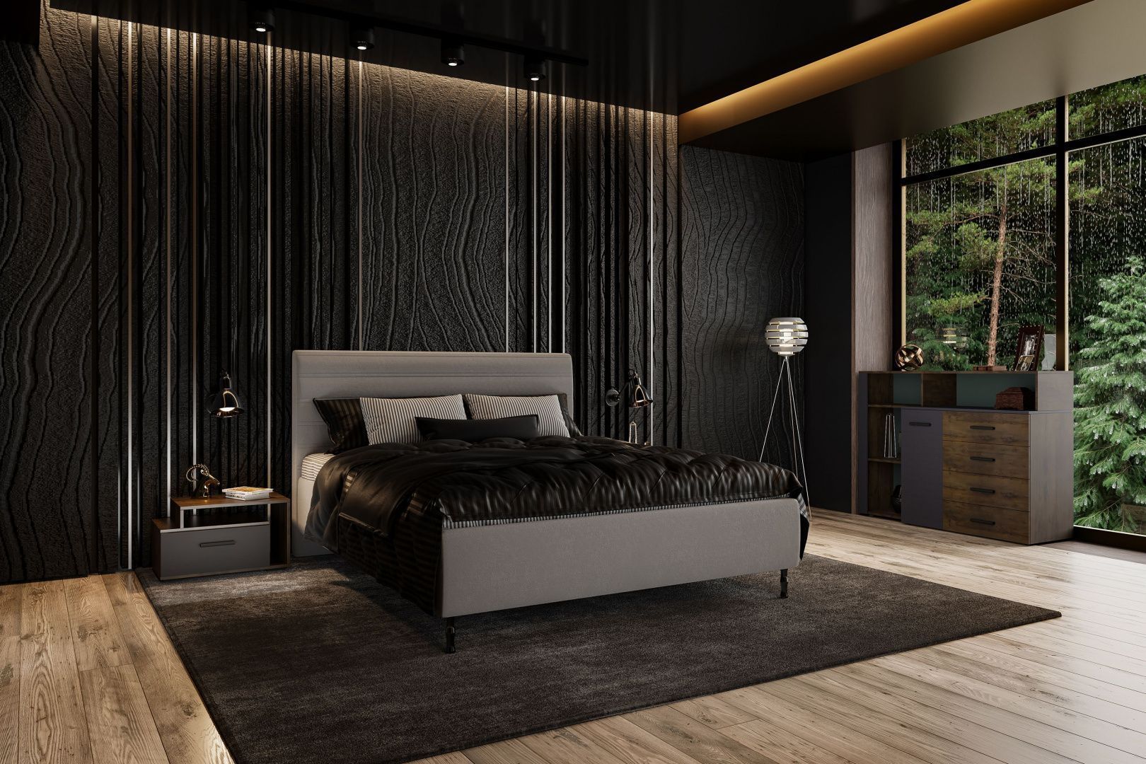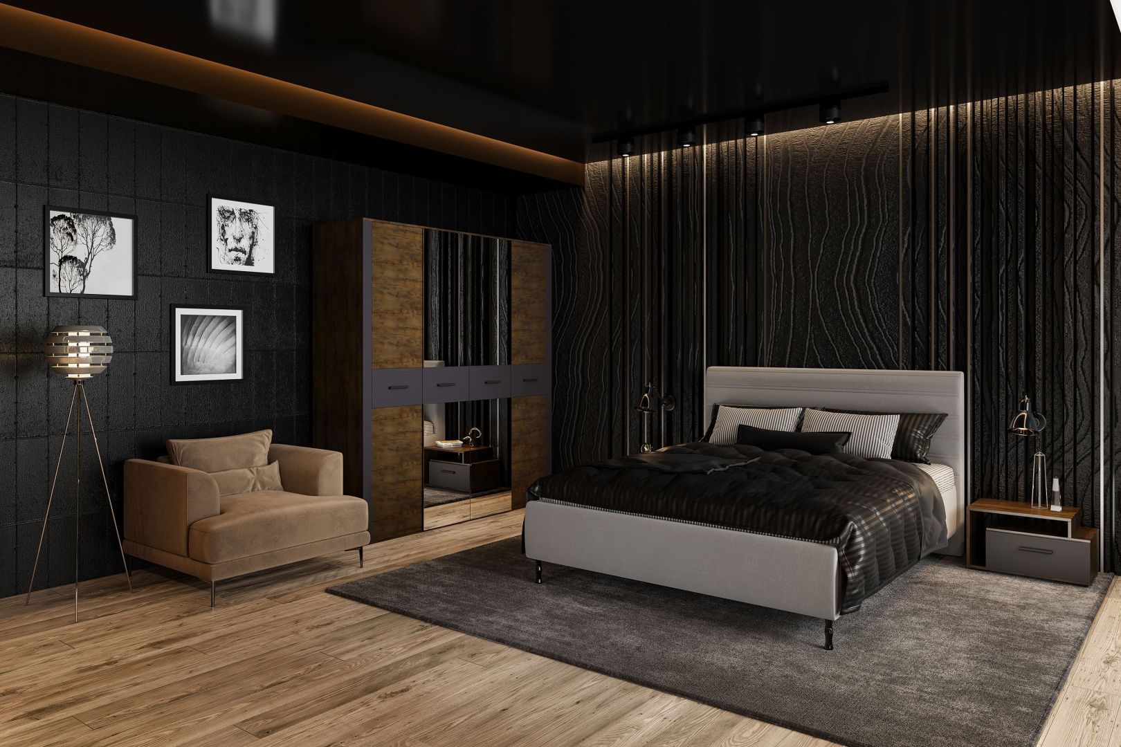 Спальный гарнитур «Челси» Комплект 1 - Графит (МИФ)